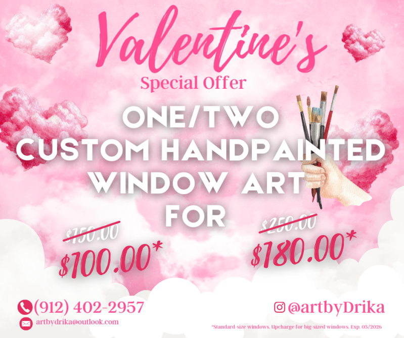 - To receive a quote, please share your ideas along with photos of the windows that need painting, murals, or artwork via email or text.